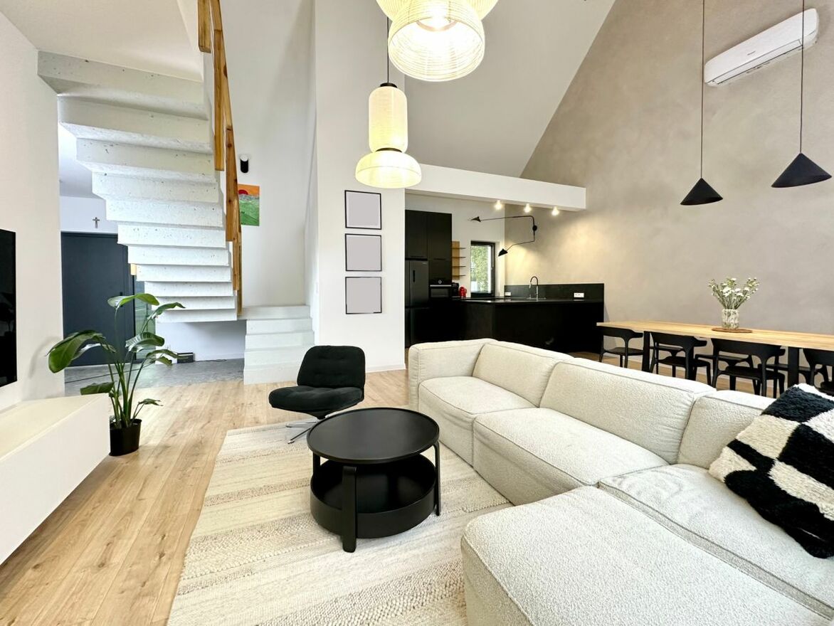 • Przestronna antresola - idealne miejsce do pracy zdalnej lub relaksu w domowym zaciszu