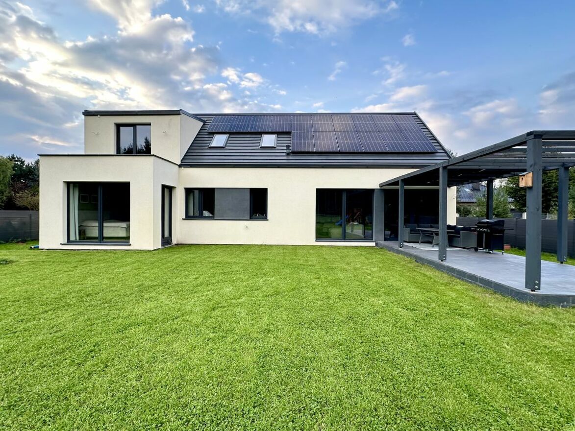 Na sprzedaż nowoczesny, energooszczędny dom jednorodzinny położony w spokojnej i malowniczej okolicy w Radzewicach (gm. Mosina), z przepięknym widokiem na las. To idealna propozycja dla osób ceniących komfort, design oraz bliskość natury. Dom wyposażony jest w pompę ciepła oraz instalację fotowoltaiczną, zapewniającą komfort i oszczędność energii.Budowę domu ukończono w 2024 roku.