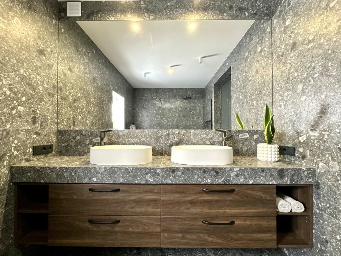 • Dwie eleganckie łazienki z prysznicem, wanną oraz bidetami